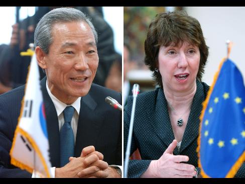 South Korea is a step closer to a free trade agreement with the EU as the European Trade Commissioner, Catherine Ashton, and her Korean counterpart, South Korean Trade Minister Kim Jong Hoon signed a trade pact in Brussels. The trade agreement must now be approved by the 27 member countries of the EU, the European Parliament, and South Korea's Cabinet, parliament and president
